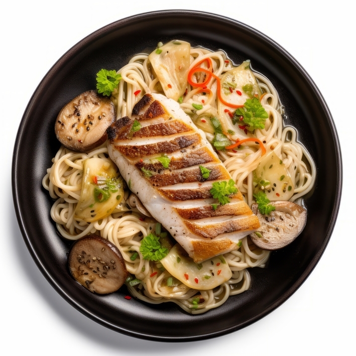 Delicious fillets of Wild Alaskan Pollock, marinated in a spicy marinade, grilled and served with fresh salad and a vegetable medley.